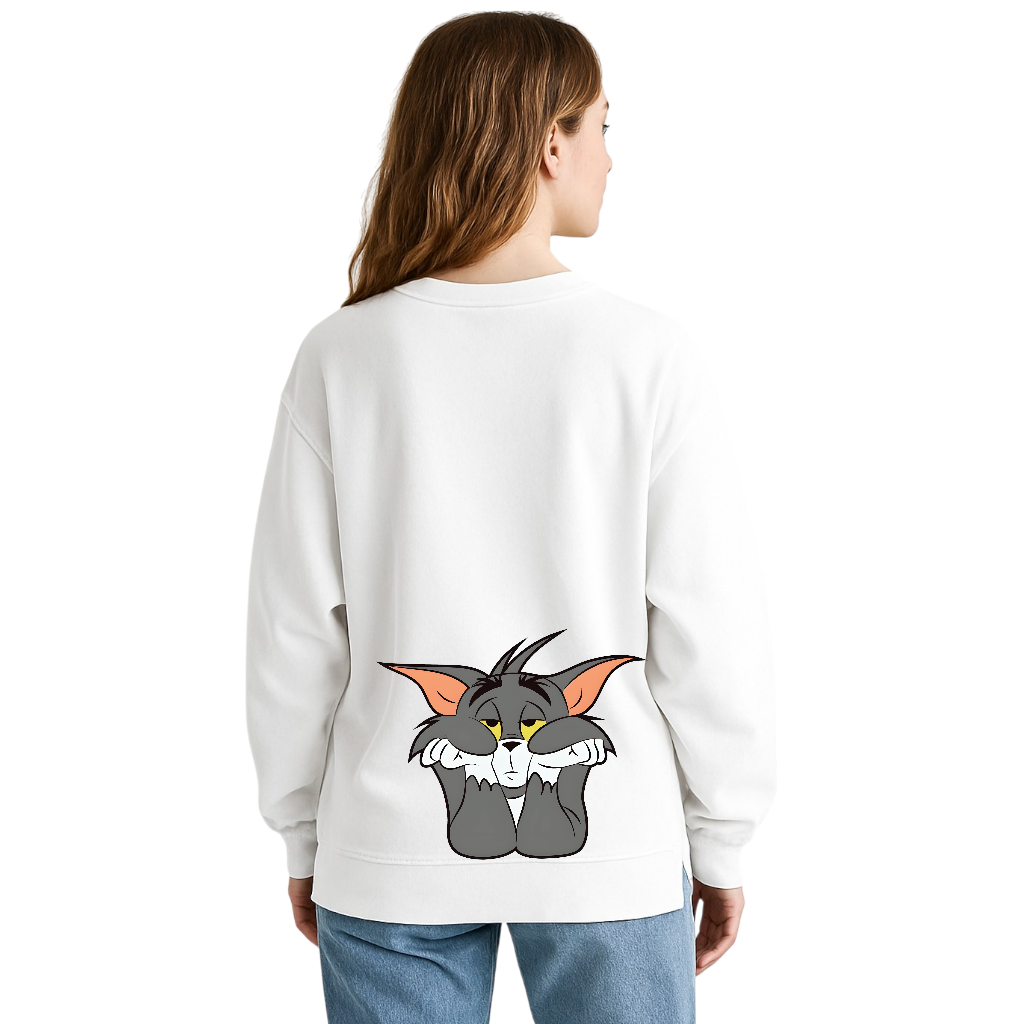 Add a touch of fun to your outfit with this white oversized sweatshirt featuring a bold cartoon pup design. Comfortable,...