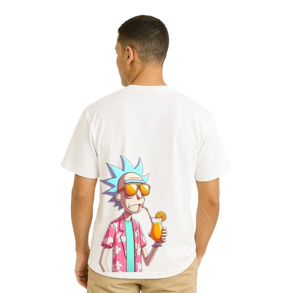 Celebrate timeless style with this white oversized tee showcasing a playful front chest print and a vertical evolution of iconic...