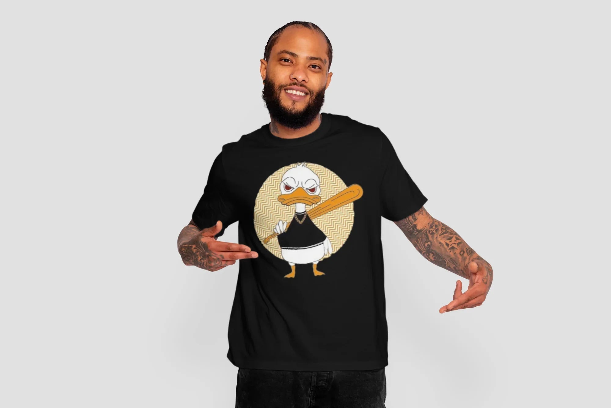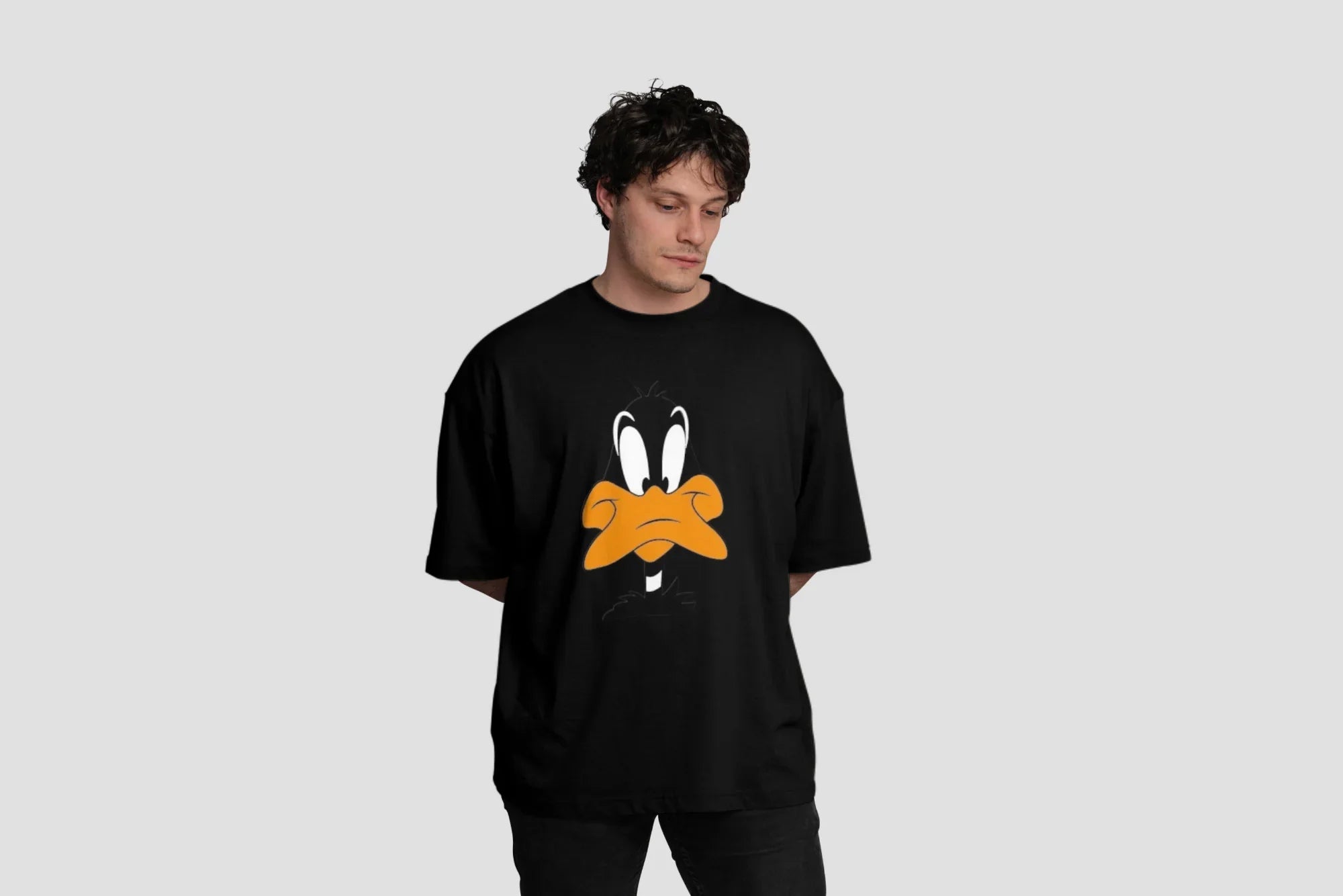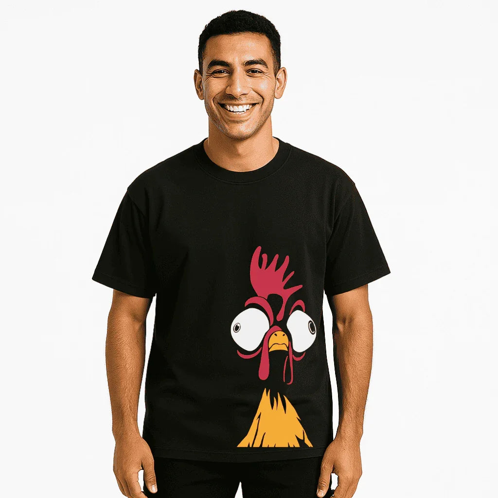 LE 450.00 EGP LE 850.00 EGPLE 450.00 EGPLE 450.00 EGP LE 850.00 EGPOversized Black T-Shirt – Bold Cartoon Chicken Graphic | Unisex Streetwear